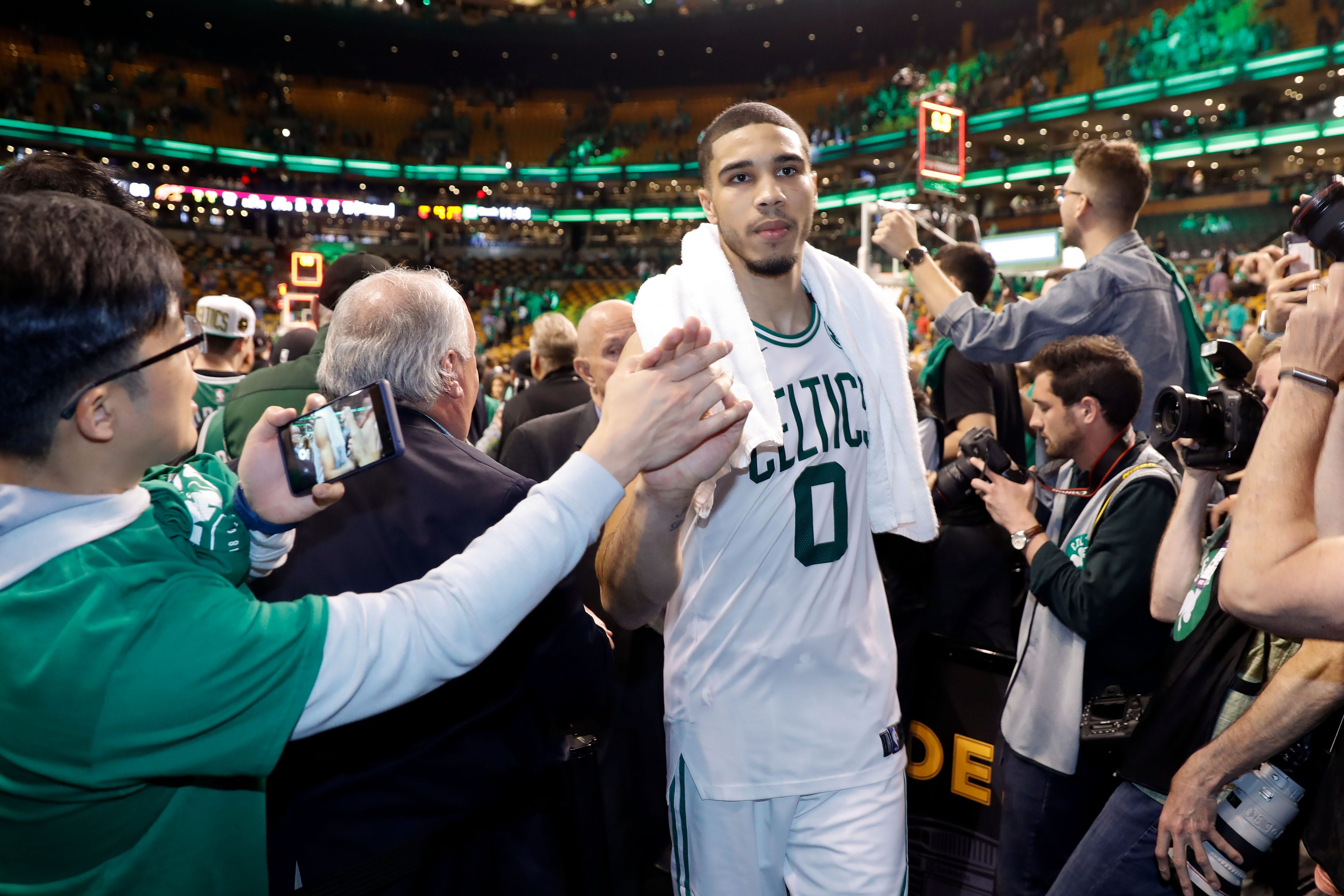 The Celtics handled LeBron James and the Cavaliers in Game 5 and moved to one win away from the NBA Finals.